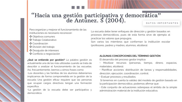 “Hacia una gestión participativa y democrática” de Antúnez. S (2004).