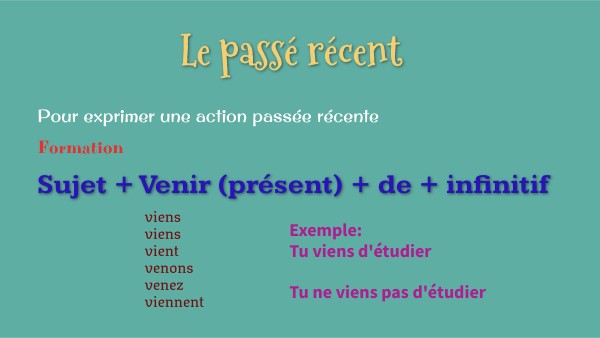 Exemple: Tu viens d'étudier Tu ne viens pas d'étudier