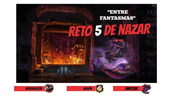 Saludos héroes. ¡Allá vamos de nuevo! Ha llegado el momento de tratar de superar el quinto reto planteado por NAZAR. Espero que halláis aprovechado para descansar en estas semanas, pero que no halláis olvidado todo lo trabajado durante el último mes de aventura, ya que será necesario.Como ya sabéis NAZAR, posee pedazos de alguno de los anillos de poder y tenemos que hacernos con todos ellos para derrotar al clan dragón. Seguir manteniendo la distancia con su lámpara de humo. No sería buena idea caer bajo su control. Último enfrentamiento con NAZAR, por lo tanto última oportunidad para conseguir las partes de anillo que posea. Buena suerte héroes y que la luna brille con vosotros.