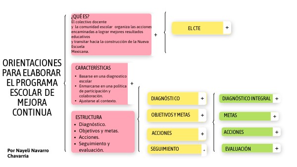 Es una propuesta concreta y realista que, a partir de un diagnóstico amplio de las condiciones actuales de la escuela, plantea objetivos de mejora, metas y acciones dirigidas a fortalecer los puntos fuertes y resolver las problemáticas escolares de manera priorizada y en tiempos establecidos.