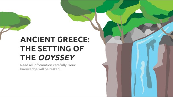 The Odyssey is an epic poem attributed to the poet Homer. Its story takes place in ancient Greece. Consisting of a large mainland and hundreds of islands, the ancient Greek world stretched from continental Europe to the western region of Asia Minor (present-day Turkey) with the Ionian Sea located to the west, the Aegean Sea situated in the east, and the Mediterranean Sea to the south. Odysseus, the main character and heroic figure of Homer’s Odyssey, ruled over Ithaca, an island in the Ionian Sea.