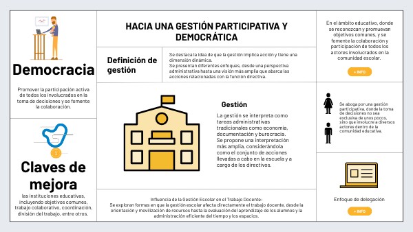 Se aboga por una gestión participativa, donde la toma de decisiones no sea exclusiva de unos pocos, sino que involucre a diversos actores dentro de la comunidad educativa.