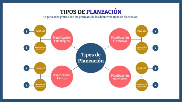 Organizador gráfico con las premisas de los diferentes tipos de planeación.