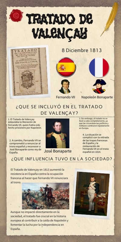El Tratado de Valençay en 1813 aumentó la resistencia en España contra la ocupación francesa al hacer que Fernando VII renunciara al trono. Aunque no impactó directamente en la sociedad, el tratado fue crucial en la historia europea al contribuir a la caída de Napoleón y fomentar la lucha por la independencia en España. .