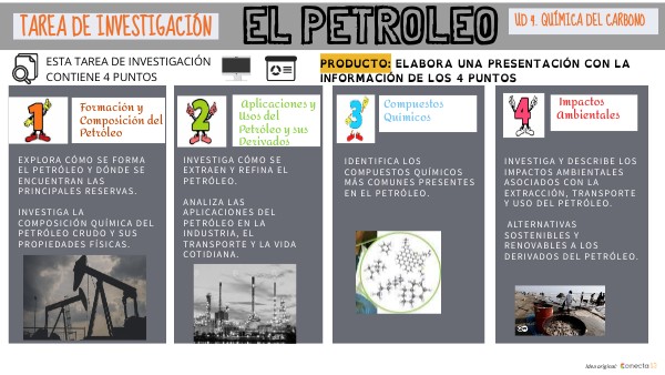 Investiga cómo se extraen y refina el petróleo. Analiza las aplicaciones del petróleo en la industria, el transporte y la vida cotidiana.
