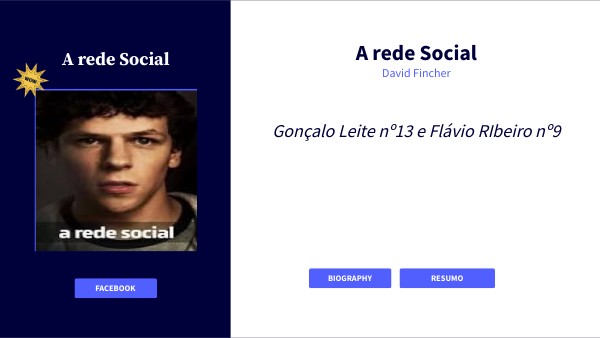 O filme “A rede social” fala sobre um estudante de Harvard e gênio da computação, Mark Zuckerberg, começa a trabalhar em um novo projeto que se transforma em uma rede social global conhecida como Facebook. Seis anos depois, Zuckerberg se torna o mais jovem bilionário da história com o sucesso de sua rede social. No entanto, a sua ascensão sem precedentes traz complicações legais e pessoais.
