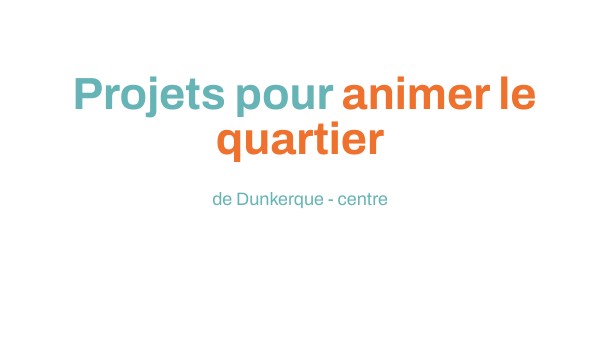 Les acteurs : les deux projets sont portés par la mairie de Dunkerque centre et sont réalisés pour et par les habitants eux-mêmes grâce à l'animation des agents de la ville et des maisons de quartier. La direction "pop' démocratie" de la CUD peut être associée