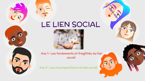 Le lien social désigne l'ensemble des relations qui unissent des individus faisant partie d'un même groupe social et/ou qui établissnt des règles sociales entre individus ou groupes sociaux différents. Chaque individu peut appartenir à plusieurs groupes sociaux et ainsi disposent de nombreux liens, de diverses natures et intensités, avec diverses personnes.Le lien social permet de s'unir autour de valeurs communes à un groupe social.