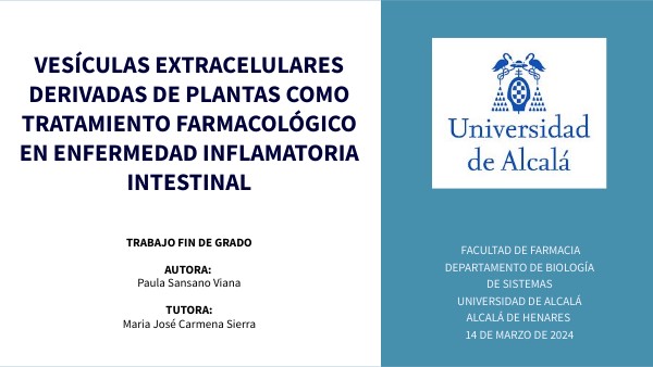 VESÍCULAS EXTRACELULARES DERIVADAS DE PLANTAS COMO TRATAMIENTO FARMACOLÓGICO EN ENFERMEDAD INFLAMATORIA INTESTINAL