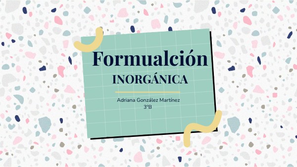 formula Nombre NaF Fluoruro de sodio Y2S3 Sulfruro de Itrio CoCl3 triCloruro de cobalto/ cloruro de cobalto (III) CuSe Seleniuro de cobre (II)/ monoseleniuro de cobre AgCl Cloruro de plata CdF2 Fluoruro de cadmio MnF2 diFluoruro de manganeso/ fluoruro de manganeso (II) CsCl Cloruro de cesio Ni2S3 Sulfruro de niquel (III)/ Trisulfruro de diniquel PbCl2 diCloruro de plomo/ cloruro de plomo(II) FeI3 yoduro de hierro (III) PCl5 Cloruro de fósforo(V)/pentacloruro de fósforo IF7 HeptaFluoruro de yodo / fluoruro de yodo (VII) SI2 diYoduro de azufre/ yoduro de azufre(II) N2S5 Sulfruro de nitrogeno(v)/ Pentafluoruro de dinitrogeno SiS2 Disulfruro de sicilio/ sulfruro de silicio (IV) IF3 Trisulfruro de yodo TeI4 tetrayoduro de tenuro XeF2 Difluoruro de xenón/ fluoruro de xenón(II) As2S3 Trisulfruro de arsenico CI4 Yoduro de carbono