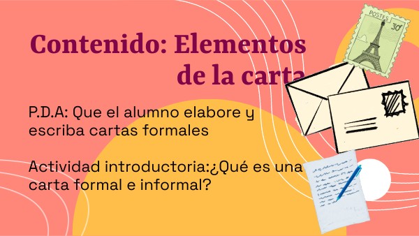 P.D.A: Que el alumno elabore y escriba cartas formales Actividad introductoria:¿Qué es una carta formal e informal?