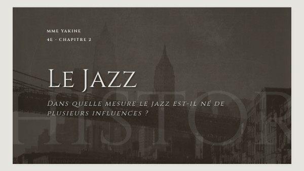 Le Jazz est est un genre musical né dans le sud des États-Unis, à la Nouvelle-Orléans en Louisiane à la fin du XIXème siècle. Issu d'un brassage entre différentes cultures (noirs, blancs, créoles), il est issu de différents courants musicaux des afro-américains : le négro-spiritual, le blues, le ragtime, le gospel .. Tout au long du XXe siècle, il a acquis une large popularité au-delà des frontières des États-Unis.