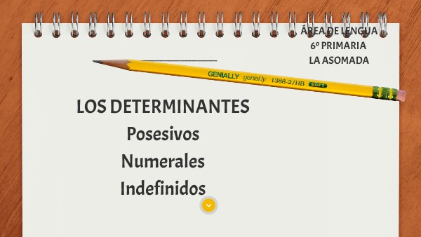 Estos determinantes los estudiaste en quinto, y este curso vamos a aprender sobre los determinates posesivos, numerales e indefinidos. Pincha en el siguiente enlaceDeterminantes posesivos