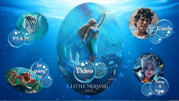 Ariel usually ______________ in the underwater kingdom. Sebastian ____________ a red crab who ____________ music. The characters often ______________ together in the ocean. Ursula ____________ magical powers that ____________ her a villain. Prince Eric ________________ in a castle by the sea.