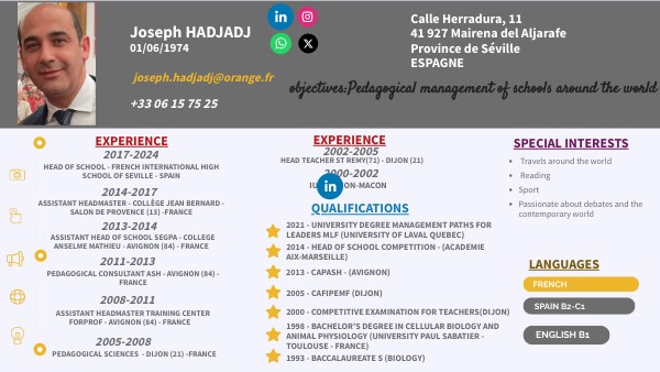 HEAD OF SCHOOL - FRENCH INTERNATIONAL HIGH SCHOOL OF SEVILLE - SPAIN