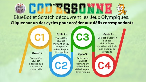 BlueBot et Scratch découvrent les Jeux Olympiques.