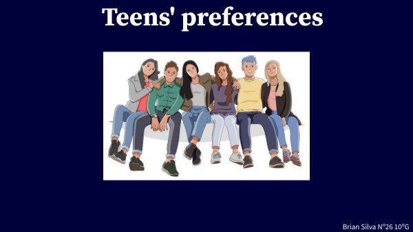In conclusion, I realized that teenagers' preferences vary a lot from teenager to teenager, but I think that teens' preferences are sometimes very similar and not quite opposite preferences.