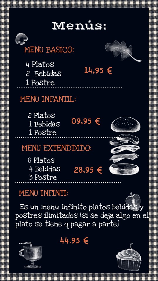 Es un menu infinito platos bebidas y postres ilimitados (si se deja algo en el plato se tiene q pagar a parte)