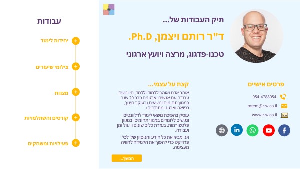 ד"ר רותם ויצמן - קורות חיים ותיק עבודות