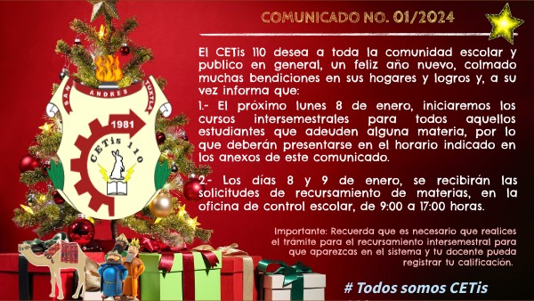 Deben acudir a la oficina de contro escolar a más tardar el día 11 de enero, para realizar trámite de recursamiento intersemestral, para los efectos de que se aperture el grupo correspondiente y se puedan registrar las calificaciones de las asignaturas previamente cursadas como: