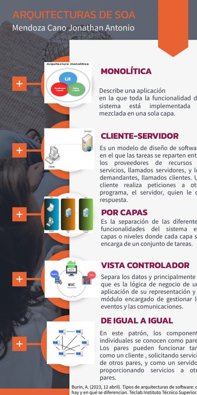Burin, A. (2023, 12 abril). Tipos de arquitecturas de software: cuáles hay y en qué se diferencian. Teclab Instituto Técnico Superior. https://www.teclab.edu.ar/tipos-de-arquitecturas-de-software-cuales-hay-y-en-que-se-diferencian/
