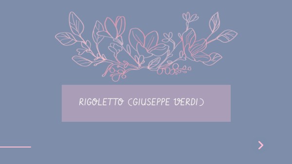 L'opera "Rigoletto" fu scritta da Verdi nel 1851 ed è basata sulla representazione teatrale di Víctor Hugo, "Le roi s'amuse". La trama ruota attorno a Rigoletto, un buffone gobbo alla corte del Ducato di Mantova, e sua figlia Gilda. Quest´opera si svolge alla corte del Ducato di Mantova, dove Rigoletto lavora per il duca, un uomo promiscuo e crudele. Rigoletto ha una figlia, Gilda, che tiene nascosta per proteggerla dalla corruzione della corte. La trama si complica quando il duca seduce a Gilda, la quale si innamora ingenuamente di lui. Rigoletto cerca vendetta assumendo a Sparafucile per assassinare il duca, ma le cose prendono una svolta tragica quando Gilda interviene per salvare l'uomo che ama.