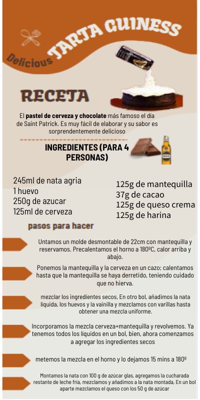 El pastel de cerveza y chocolate más famoso el día de Saint Patrick. Es muy fácil de elaborar y su sabor es sorprendentemente delicioso