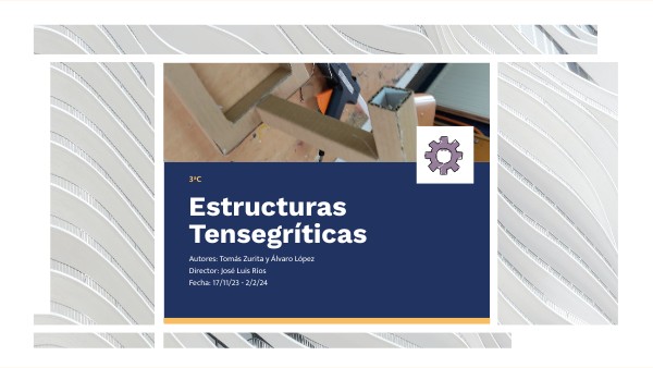 Llamamos estructura tensegrítica a una estructura triangulada con piezas equivalentes, a la que hemos sustituido uno de los lados que soportan tracción por un cable o hilo. Funciona gracias a las fuerzas internas que pueden dejar de enfocarse en puntos concretos y se reparten por toda la estructura gracias a los hilos. Suelen usarse para decoraciones, monumentos, puentes, pra sujetar cubiertas...