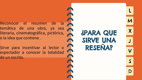 1. Síntesis: Presenta aspectos importantes, ideas clave y conceptos destacados de la reseña. NO SE DEBE CONFUNDIR CON EL RESUMEN2. Comentario crítico: La valoración que realiza el autor de la crítica sobre la obra, difiere de opinión que podría tener tener sobre el tema.