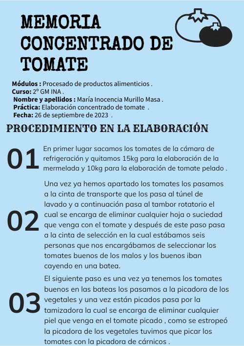 Módulos : Procesado de productos alimenticios . Curso: 2º GM INA . Nombre y apellidos : María Inocencia Murillo Masa . Práctica: Elaboración paté de hígado. Fecha: 10 de enero de 2024.