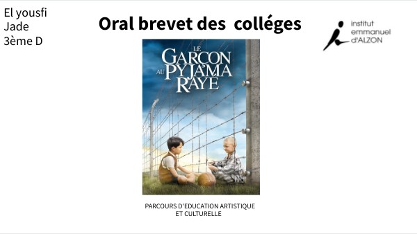 Le sujet de mon oral porte sur le génocide juifs , je me suis appuyé sur un film qui s'appelle : Le Garçon Au Pyjama Rayé