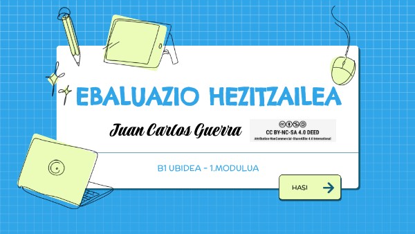 Ebaluazioak izaera etengabekoa, pertsonalizatua,kooperatiboa eta konpetentziala duen heinean eta hiru fase kontutan hartu dituela kontutan harturik ondorengoa diseinatu dut.