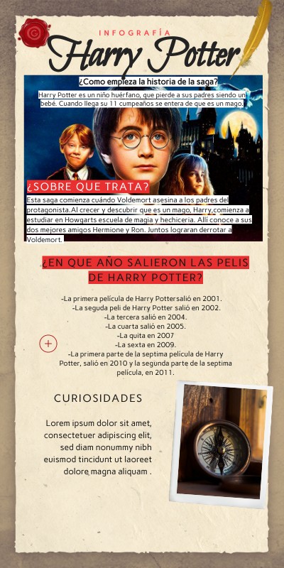 Harry Potter es un niño huérfano, que pierde a sus padres siendo un bebé. Cuando llega su 11 cumpeaños se entera de que es un mago.