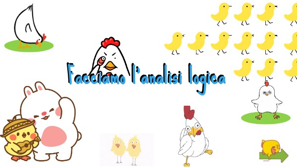 SOGGETTO, PREDICATO VERBALE, PREDICATO NOMINALE, COMPLEMENTO OGGETTO, COMPLEMENTO DI TEMPO, COMPLEMENTO DI LUOGO, COMPLEMENTO DI MODO, COMPLEMENTO DI SPECIFICAZIONE, COMPLEMENTO DI MEZZO, COMPLEMENTO DI UNIONE, COMPLEMENTO DI MATERIA, COMPLEMENTO DI COMPAGNIA, COMPLEMENTO DI TERMINE.