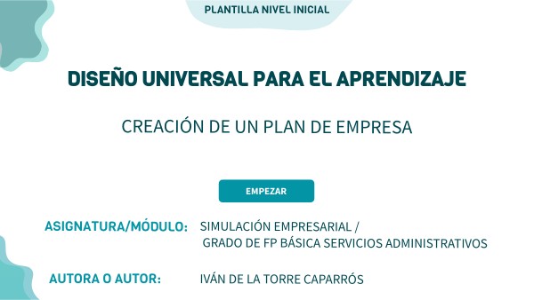 Se configura una plantilla DUA para impartir en la situación de aprendizaje "Creación de una empresa o idea de negocio". De esta forma, se pretende atender a la diversidad y superar las principales barreras en el aprendizaje