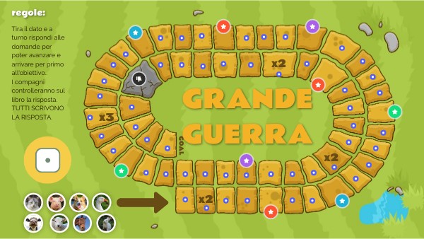 Tira il dato e a turno rispondi alle domande per poter avanzare e arrivare per primo all'obiettivo..I compagni controlleranno sul libro la risposta. TUTTI SCRIVONO LA RISPOSTA.