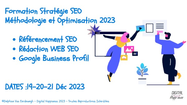 Ce support pédagogique est strictement et exclusivement de la propriété intellectuelle de Delphine Van Eerdewegh, Société Digital Happiness. Il est soumis au droit d'auteur, et aucune reproduction n'est autorisée sous peine de poursuite.