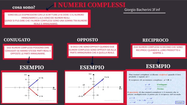 DUE NUMERI COMPLESSI POSSONO DIRE CONIUGATI SE HANNO STESSE PARTI REALI E OPPOSTE LE PARTI IMMAGINARIE.