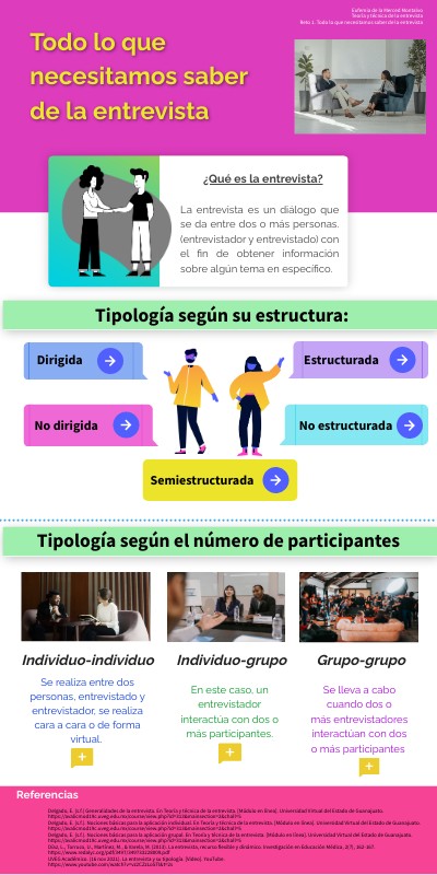 https://www.redalyc.org/pdf/3497/349733228009.pdf UVEG Académico. (16 nov 2021). La entrevista y su tipología. [Video]. YouTube. https://www.youtube.com/watch?v=vz2CZzLoSTI&t=2s