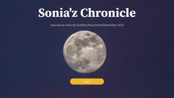 En cette fin d'année 2023, le journal hebdomadaire d'octobre s'est vu privé de toute visibilité par le site sur lequel il se trouvait.C'est pourquoi en ce mois de janvier 2024, nous, tous les membres du Journal Sonia'z Chronicle, regroupons une très grande majorité (voire la totalité) des articles censés être présents dans les journaux précédemment cités.