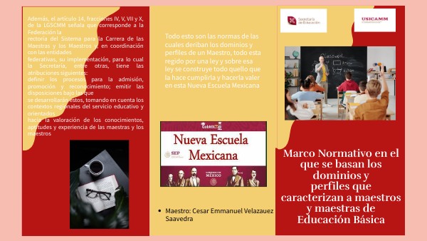 Todo esto son las normas de las cuales deriban los dominios y perfiles de un Maestro, todo esta regido por una ley y sobre esa ley se construye todo quello que la hace cumplirla y hacerla valer en esta Nueva Escuela Mexicana