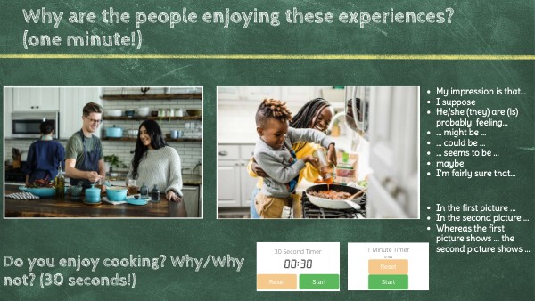 Do you enjoy cooking? Why/Why not? (30 seconds!)