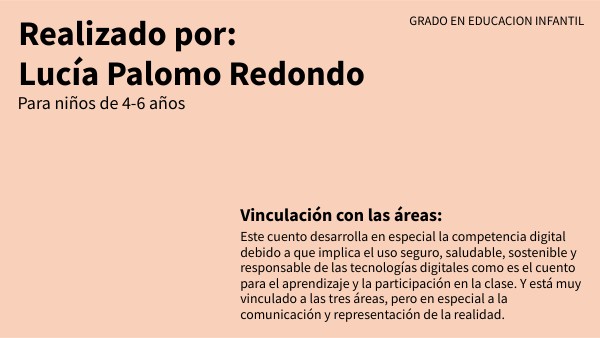 Este cuento desarrolla en especial la competencia digital debido a que implica el uso seguro, saludable, sostenible y responsable de las tecnologías digitales como es el cuento para el aprendizaje y la participación en la clase. Y está muy vinculado a las tres áreas, pero en especial a la comunicación y representación de la realidad.