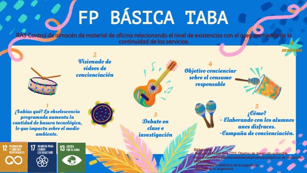 Bibliografía: -Naciones Unidas. (s.f.). ODS. Objetivo de desarrollo sostenible. https://www.un.org/sustainabledevelopment/es/objetivos-de-desarrollo-sostenible/ - Programación didáctica de la asignatura -Apuntes de la asignatura