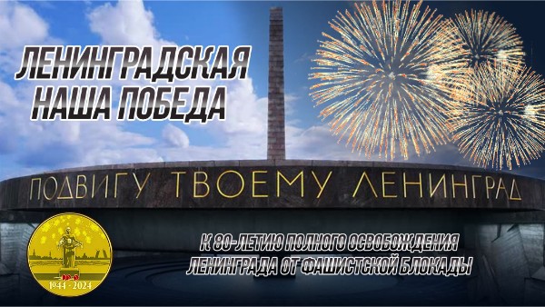 27 января 1944 года продолжавшаяся 872 дня блокада Ленинграда была полностью ликвидирована. Героическая оборона города на Неве завершилась. В этот день в Ленинграде был дан артиллерийский салют 24 артиллерийскими залпами из 324 орудий, сопровождавшийся фейерверками и подсветкой зенитными прожекторами. Так для героического Ленинграда было сделано единственное исключение: салюты в ходе Великой Отечественной войны производились исключительно в Москве.