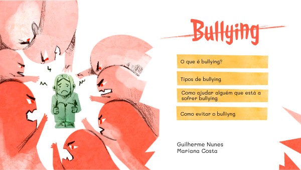 Bullying é uma prática sistemática e repetitiva de atos de violência física e psicológica, tais como intimidação, humilhação, xingamentos e agressão física, de uma pessoa ou grupo contra um indivíduo.