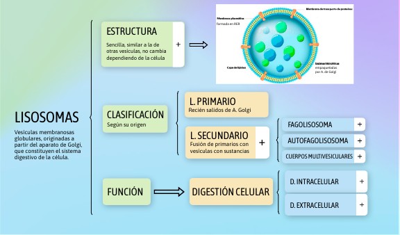 Vesículas membranosas globulares, originadas a partir del aparato de Golgi, que constituyen el sistema digestivo de la célula.