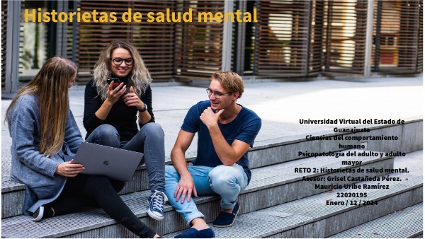 Universidad Virtual del Estado de Guanajuato Ciencias del comportamiento humano Psicopatología del adulto y adulto mayor RETO 2: Historietas de salud mental. Asesor: Grisel Castañeda Pérez. Mauricio Uribe Ramírez 22020195 Enero / 12 / 2024