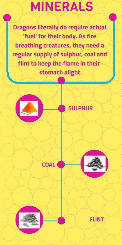 Dragons literally do require actual 'fuel' for their body. As fire breathing creatures, they need a regular supply of sulphur, coal and flint to keep the flame in their stomach alight
