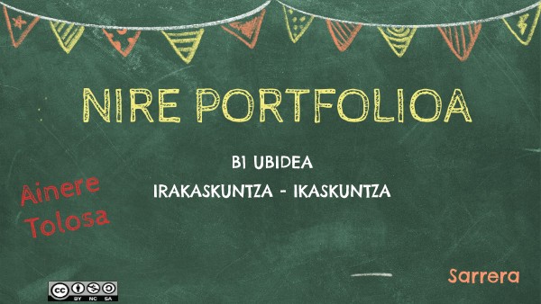 Kaixo, Ainere Tolosa naiz, Lehen Hezkuntzako irakaslea. Portfolio honetan, Ikaskuntza-Irakaskuntza ikastaroa B1, Ubidean egindako lanen bilduma aurkituko duzu.